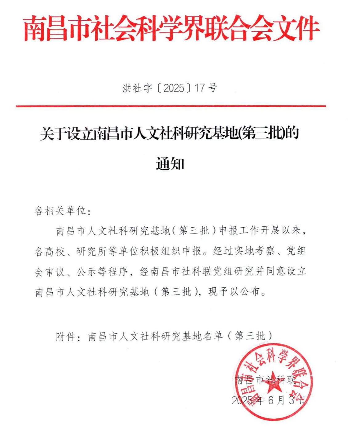 近日,南昌市社联下发了《关于设立南昌市人文社科研究基地(第三批)的通知》(洪社字〔2025〕17号),江西应用科技学院经济管理学院魏雅姝副教授牵头申报的“健康旅游与地域文化融合发展研究中心”获批为南昌市人文社科研究基地。这是继该校2023年获批“南昌市中小学心理健康教育研究与应用中心”后,再次获批该研究基地。
