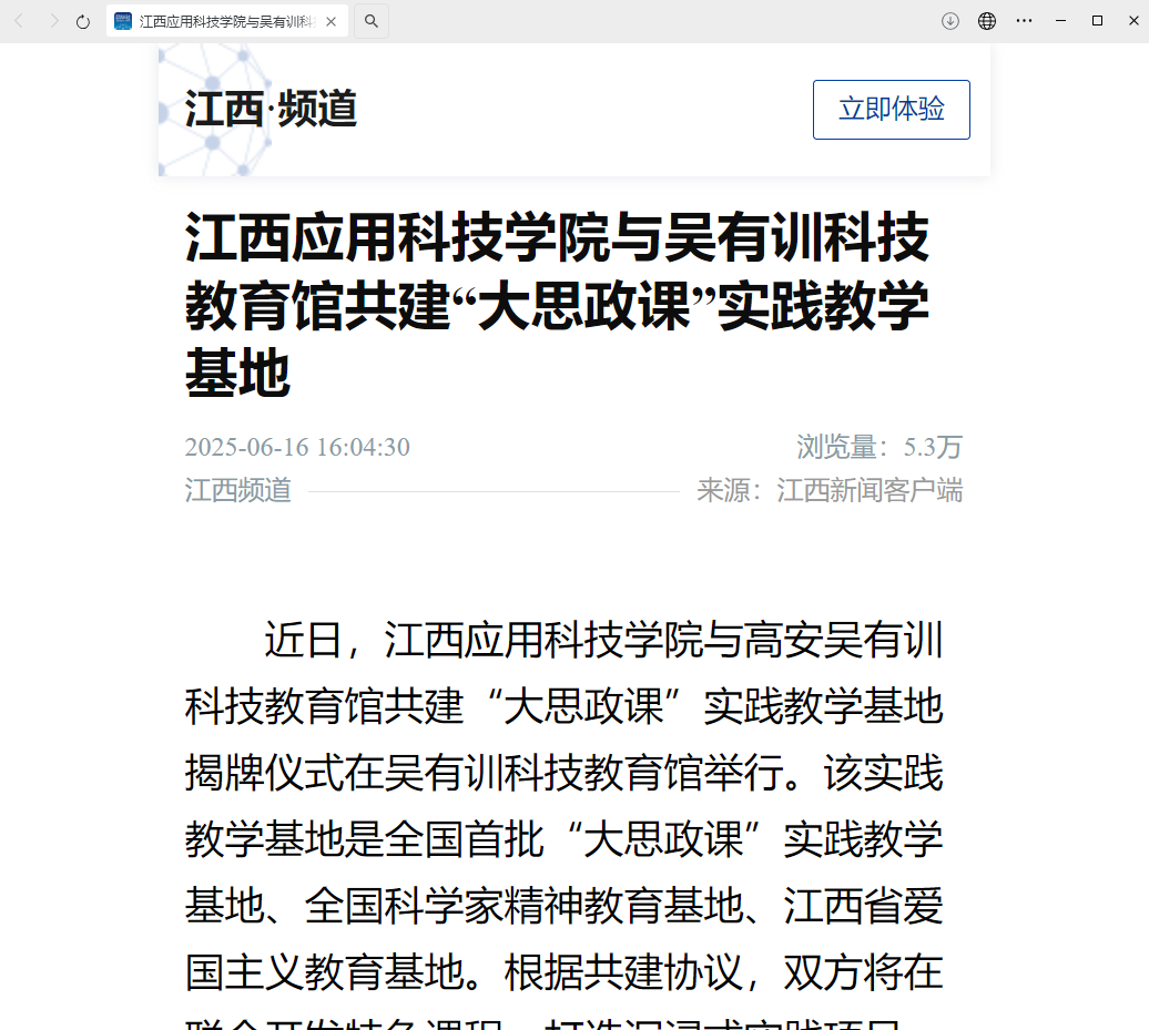 上一条:【人民网江西频道】江西应用科技学院在“挑战杯”省赛中创佳绩 下一条:【江西新闻客户端】以文化人!江西应用科技学院2025年“春暖应科”校园文化活动成果展演圆满结束