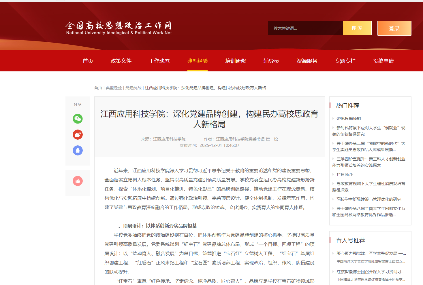 【全国高校思想政治工作网】江西应用科技学院:深化党建品牌创建,构建民办高校思政育人新格局