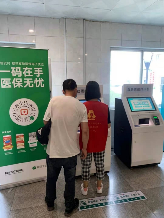 守护“白衣天使”医务志愿服务活动的时间是8:00--11:30,我的主要任务是在人民医院门诊大楼帮助那些不会挂号和缴费的患者进行挂号和缴费,导医导诊,帮助打印报告单等。由于好久没有站这么长时间,我在中后场的时候会感到腰酸脚酸。每到这时我就会想到他们脸上的笑容和一句句“谢谢”,这是我最大的精神支柱,相信我一定可以帮助更多的患者实现便利。“老吾老以及人之老,幼吾幼以及人之幼”。有一次,一位老爷爷在核酸检测后不知如何取报告单,我边讲解边做示范,这样,以后在没有志愿者在身边的时候爷爷也可以靠自己取得报告单。虽然他带着口罩,但是我可以感受到他全程笑眯眯的。拿到报告单后,他除了说谢谢,还一个劲我夸,从这里我可以感受到他的幸福感在提高。后来,当我遇到每一给不会打印报告单的人们,我都会不厌其烦的给他们讲解如何打印。这样,即使以后在没有志愿者在身边的时候,他们也可以靠自己取得报告单。