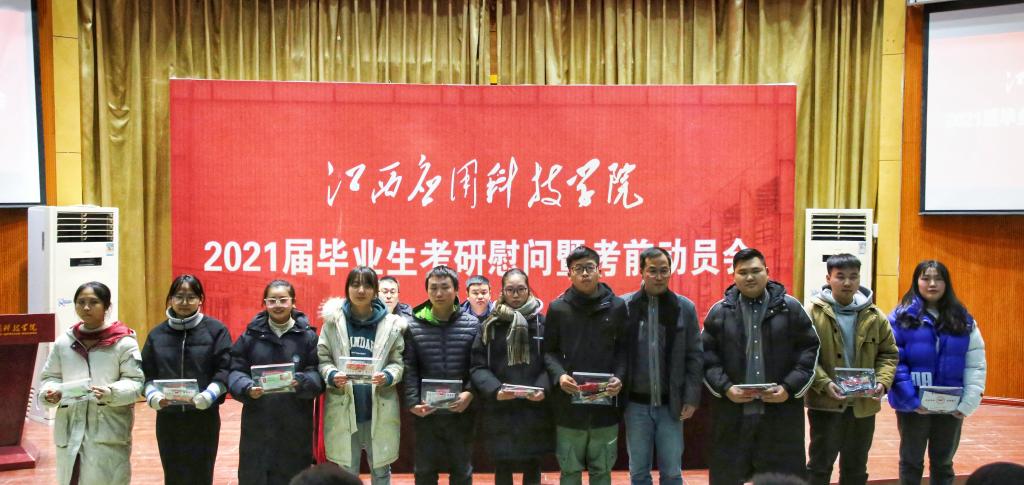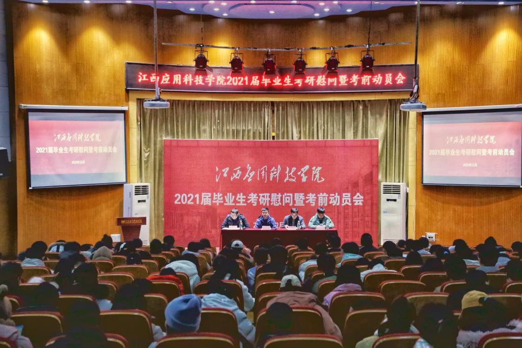 为坚定学生考研信念,增强学生考研自信心,引导学生积极面对考研。12月17日下午4点,江西应用科技学院2021届毕业生考研慰问暨考前动员大会在学校浴星湖大讲堂举行。