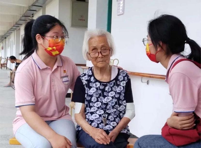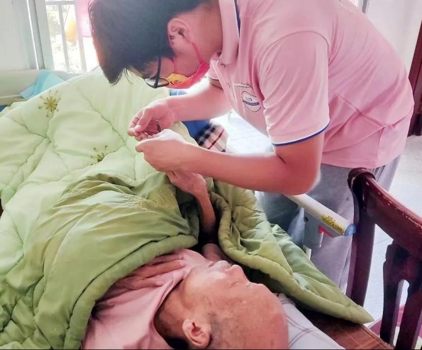 志愿者们给老人