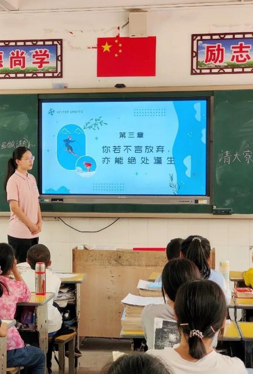 “童心夏梦·红旅宣讲团“的队员在叶坪中学的课堂上通过声情并茂的理论知识宣讲和顽强拼搏的运动健儿的事例,感染着每一位学生,将冬奥会的精神传递给青少年。