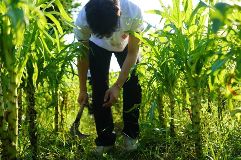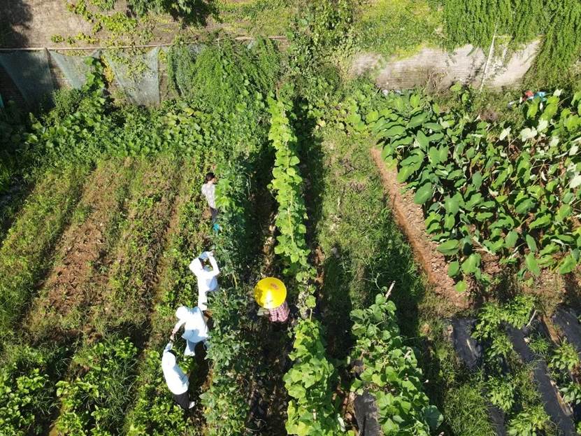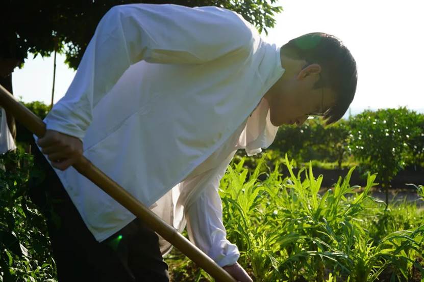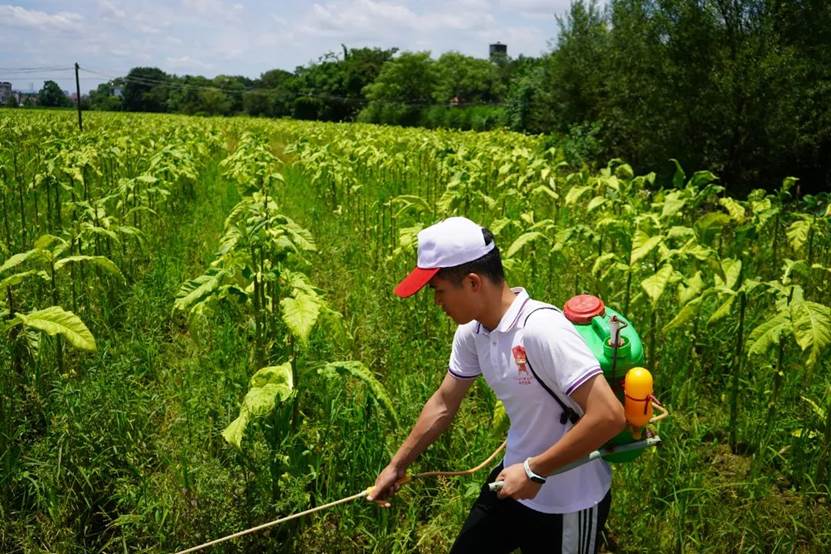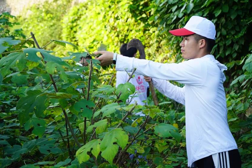 社会实践队来到上社村开展除草助农活动,体验农民劳动辛苦,激发青年学生爱劳动、朴实勤恳的优良作风。经济农作物杂草滋生,为使农作物更好地生长,实践队员们对菜园的杂草进行清理,实践队员们撸起裤脚,走进梯田,背上农药箱。