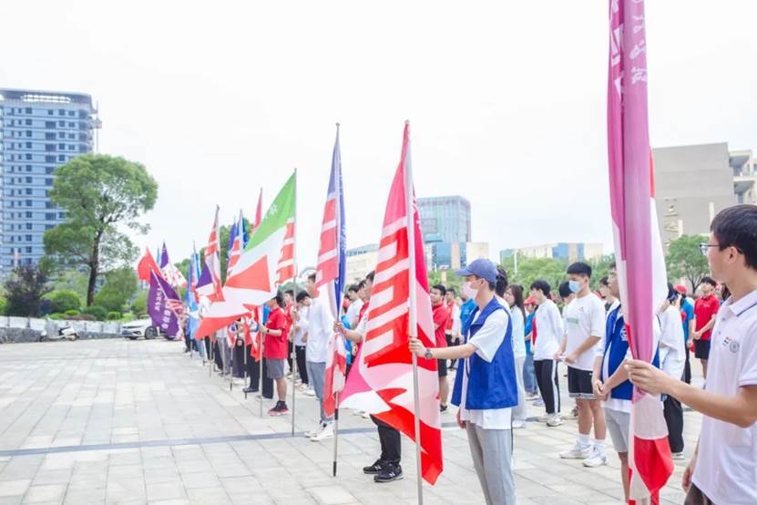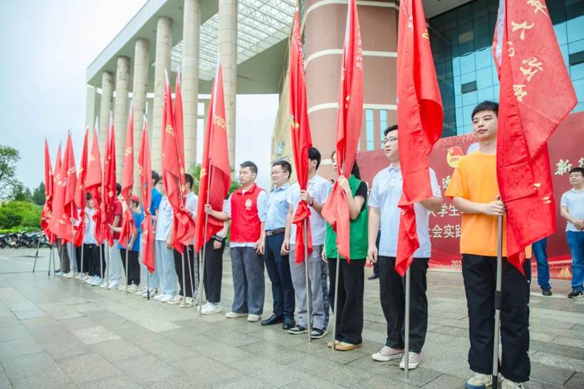 在庄严的氛围中,校领导为出征的社会实践团队进行授旗,表达了对实践团队的殷切期望与深情嘱托。志愿者们接过旗帜,也接过了这份责任,纷纷表示不会辜负学校的期望,必将有所作为,服务社会。