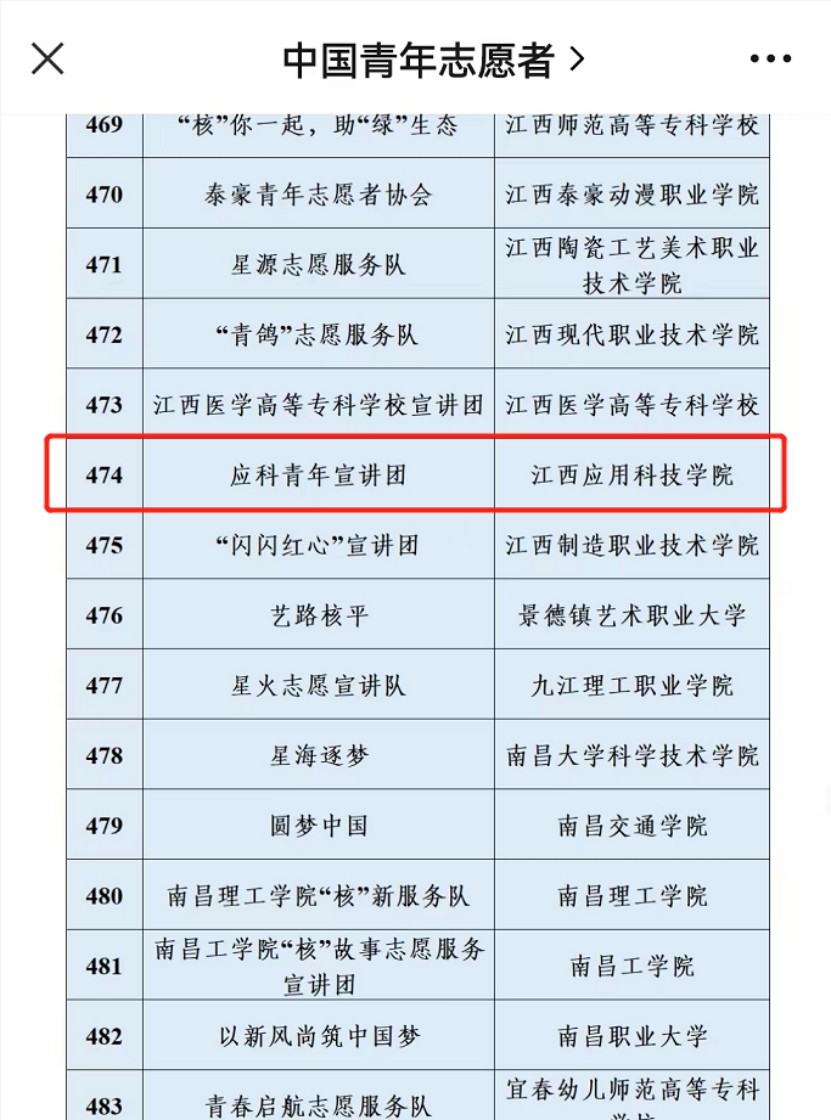近日,我校应科青年宣讲团成功入选由团中央青年志愿者行动指导中心、中国核工业集团有限公司、中国青年志愿者协会秘书处联合开展的“强国有我 ‘核’你一起”大学生志愿宣讲团活动大学生志愿宣讲团。