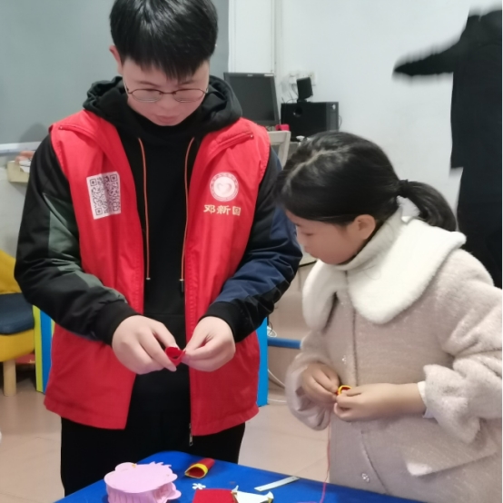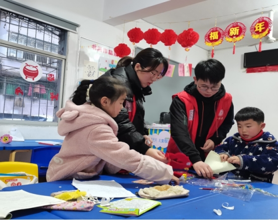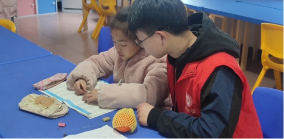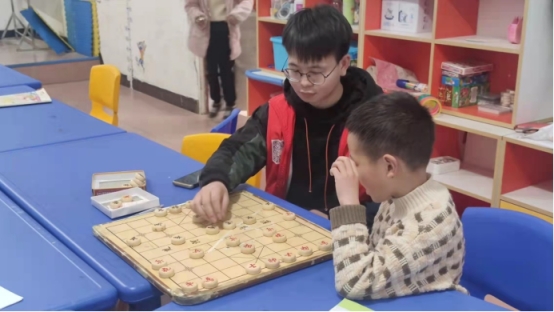 为响应国家对加强农村留守儿童关爱保护工作的号召,促进留守儿童健康成长,形成全社会关爱农村留守儿童的良好氛围,1月23日,吴志磊同学主动投身该项志愿服务活动,目前在壹基金儿童服务站“童心港湾”开展实践活动。吴志磊同学主要给孩子们辅导作业,教孩子们手工制作,陪孩子们下象棋,并与他们进行交流,给孩子们送去温暖和关怀,希望能用自己的关爱润泽孩子们的心田,点亮孩子们的七彩寒假。