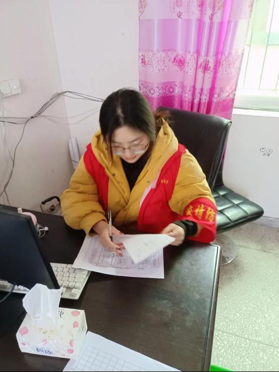 在春节即将来临之际,邹鑫同学毅然决然再次参与到村委会春节期间疫情防控工作当中去,作为一名学生工作者,为展现青年大学生的良好风貌,为实现自我社会实践价值,他积极参与到基层工作,积极参与到社会志愿服务实践活动当中,在本次在村委会疫情防控工作部署中,他紧跟工作安排,第一,排查返乡人员名单,每日更新名单,分类低中高风险人员,收集核酸检测报告。第二,参与到疫情防控志愿者工作,积极排查村到组两级省外返乡未上报名单,上门发放居家隔离结束通知书。第三,去各大小村内超市门口贴宣传语,行程码,赣通码,布置相关返乡检测卡口等工作。