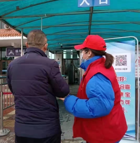 我主要负责对志愿者进行签到,上岗前体温检测登记,活动拍照及交接班制度。根据交通枢纽负责人的要求,安排好志愿者的岗位,并实施轮换制度。在车站入口检查并帮助行人填报健康码,检查旅客核酸检测采样信息是否录入,对已录入人员分批放行到核酸检测点,提醒、帮助未录入人员在等候区继续录入核酸检测采样信息。同时主动引导老人、孕妇、带小孩、行动不便、需换乘、急需上卫生间的旅客走应急通道,带领48小时内接种过疫苗的旅客到核酸检测点单独登记做核酸检测。对上了年纪的老人来说流利使用手机是有难度的,在此期间我也会耐心的向他们一一解决问题,有时也会有腿脚不便的旅客,帮他们把行李从出站口搬至接站口,火车站人流量非常大,我也会在卡口提醒来往行人正确佩戴口罩。