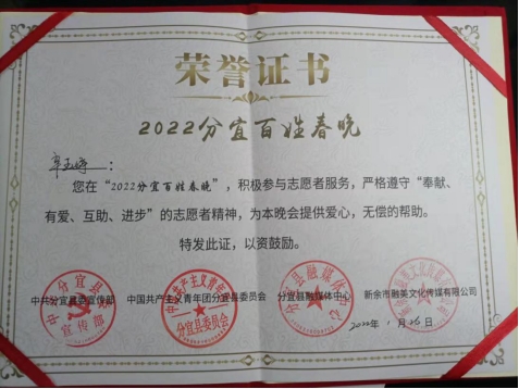 在得知2022年寒假全国大学生“返家乡”社会实践启动的消息后,我就开始了“蹲守”分宜县共青团微信公众号的日子。在分宜共青团公众号发布返家乡社会实践信息的第一时间,我就马上报名,进入了分宜县返乡大学生微信群,成为了2022分宜百姓春晚活动和分宜县汽车站疫情防控岗的志愿者。