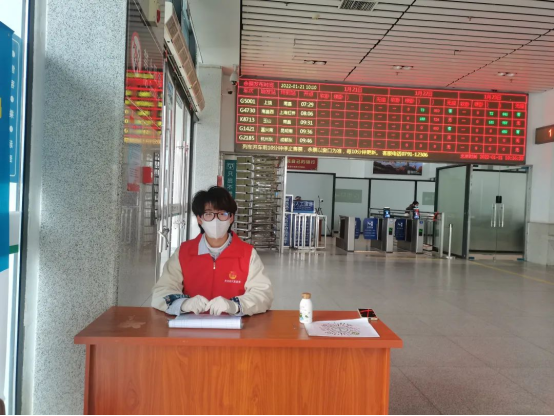 1月17日,弋阳团县委组织开展2022年“暖冬行动”青年志愿服务启动仪式,我积极响应号召参加活动。现场查验个人行程码及核酸检测证明,引领旅客出行,做好个人防护。