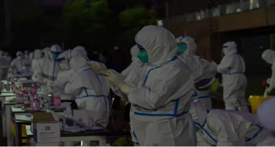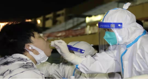 漫长的人流,二十个核酸检测点,志愿者们的坚守推动检测进行高效迅速。坐下仰起脑袋,一次性采样器在鼻子或嘴巴里轻刮。“别躲,别躲,马上就好了”医护人员轻声安抚。将样本放入试管的红色液体里浸泡,动作熟练且迅速,一样的动作在这一天里重复了千万次。一个个工作台,一盏盏灯,见证了这个夜晚,见证了寒夜中坚守的“应科青年”。