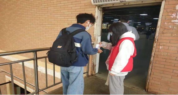 我校数百名志愿者参与到防疫志愿服务一线他们协助核酸检测、宿舍管理测量体温等工作。志愿者们在寒风下维持核酸检测队伍的秩序,提醒师生佩戴好口罩。不论在哪个岗位,他们都在用行动诠释着青春的力量,始终与学校同心抗疫。疫情防控学生志愿者们站上自己的岗位,共筑校园健康防线,他们忙碌的身影是一道道温暖的风景线。无私奉献,勇于担当,行动井然有序,指挥专业有素,这是疫情防控学生志愿者们的鲜明标志!