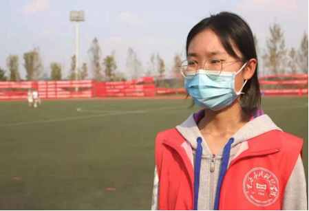 “身穿红马甲,站在操场的一侧,作为青协的一员,肩负着维持应有秩序的责任。笔直站立,目视前方,运动员跑过的身影令人心情激昂。在整个工作中,没想象中要干很多事,简单站岗,时间久了也就会换岗,所以也没那么累。虽然没办法坐在看台上为运动健儿们呐喊鼓掌,但内心依旧火热。身为志愿者,我有该干的事,我时刻明白我应该做什么:阻止不该过过道的运动员,帮助搀扶摔倒的运动员……虽没那么自由但很光荣,这大概就是当志愿者的意义吧,无私奉献,服务。”这是一位普通的青协志愿者所说的话。