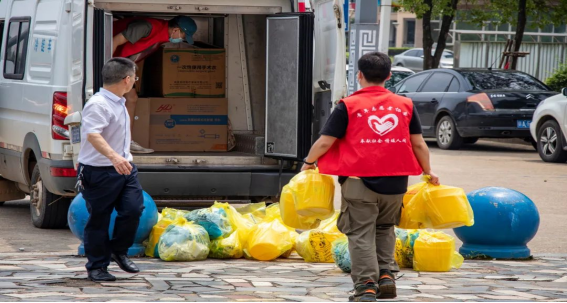 历时两天的疫苗接种工作,志愿者在各自的岗位上各司其职,保障了各区域的协调配合,协助完成了八千多次疫苗的接种工作,每天大量的接种人员,疲惫与汗水交织在每个志愿者身上,可依然可以在各个区域看到他们忙碌的身影,在疫苗接种工作完成后,志愿者协助工作人员将接种用品搬运完,也就将这次疫苗接种画上了圆满的句号。