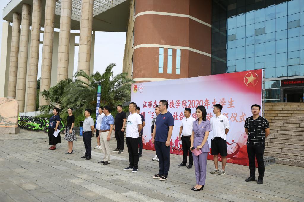 7月19日上午,江西应用科技学院2020年大学生暑期三下乡社会实践活动出征仪式在图书馆前举行,党委委员、副校长吴朝栋,校团委副书记李园园,各学院党总支书记、团总支书记,各团队指导老师、队员出席了本次活动。出征仪式由校团委办公室主任王姣姣主持。
