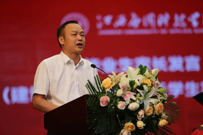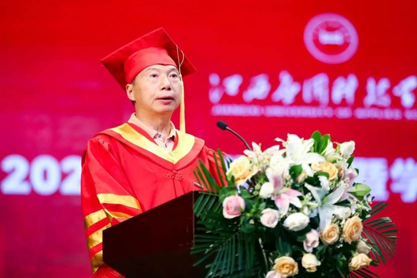 董事长黄玉林在典礼上发表讲话,他表示在学校党政同心的坚强领导、全体教职工的辛勤耕耘下,特别是在同学们作为主体,作为内因的奋发努力、创新学习,使得我校根本特色的“三元育人”理念演绎得精彩纷呈,让学校为之光荣,让同学们为之自豪。学校在全省大学生爱国主义知识竞赛获一等奖,在全国大学生“挑战杯”获学术科技作品专项组优秀组织奖,在第九届全国“大唐杯”全国大学生移动通信5G技术大赛获本科组一等奖十项等诸多荣誉都是全校师生努力的见证。近年来,山水园林校园建设日趋完善;“五大产业学院”的建设开创了产教融合、校企合作的全新探索。黄玉林还从人生和创业两个方面和毕业生分享了自己的人生经验,并寄语青年:我们无权轻慢人生只有一次的蓬勃生命,我们无法儿戏改革开放人才辈出的这一伟大时代,我们无须在尚不如意的人生际遇中沉湎彷徨。调整纷繁的意念,迈出坚实的脚步,以一种幡然开朗的清醒,以一种必挑重担的责任,追求卓越,自律自强。