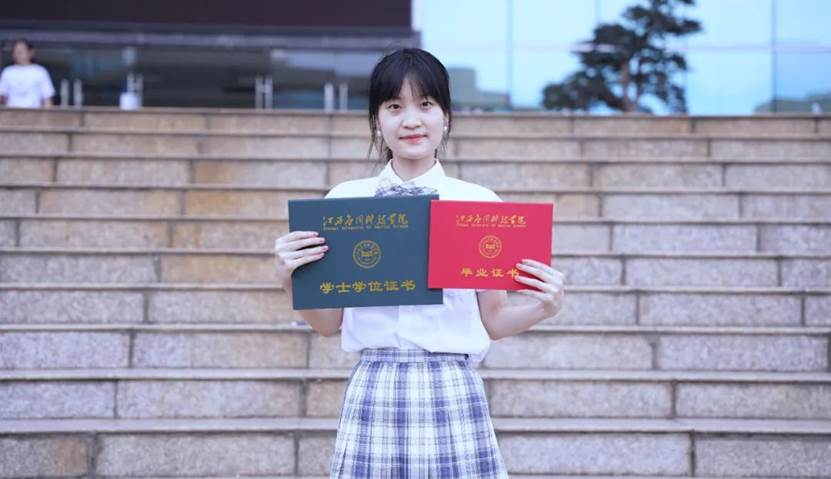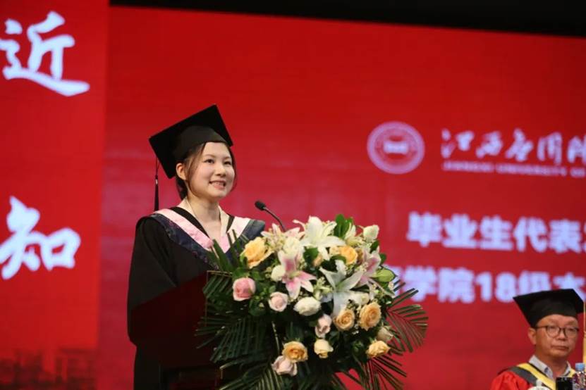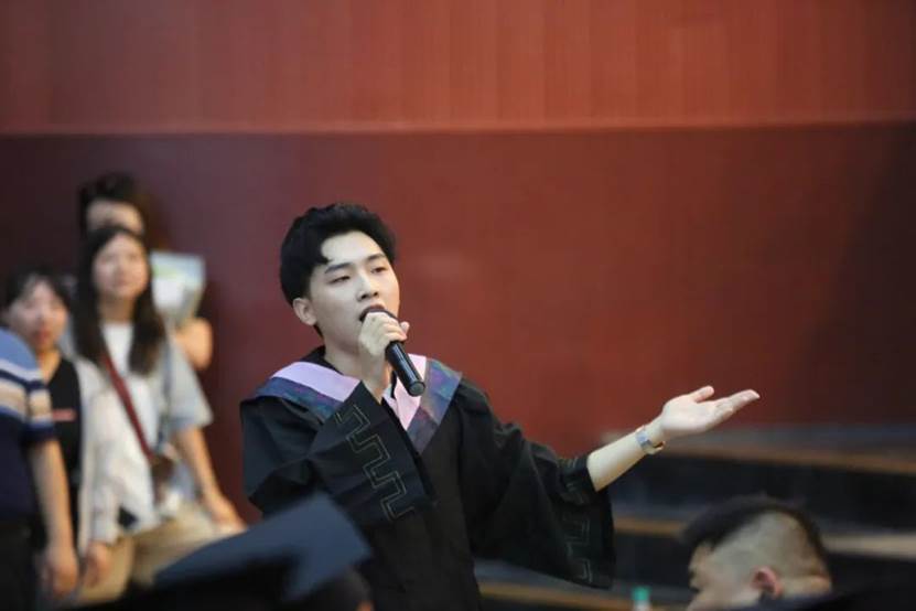 毕业生代表教育学院18级本科生佟欣在典礼上发言。她表示,毕业后将带着应科人的情怀与担当奔向中国海洋大学开启研究生生涯。感恩学校给予的平台与机会,各位老师的教导和帮助,同学们的互相鼓励与陪伴。