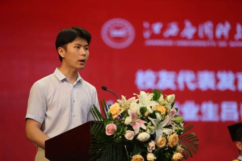 校友代表2015级吕善政在典礼上发言。他勉励学弟学妹们要永葆理想信念、永怀赤子之心,在平凡的岗位中练就不平凡的自我,把人生的小我主动融入到国家的大我中去,为祖国为人民贡献自己的青春力量。