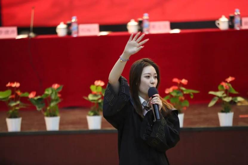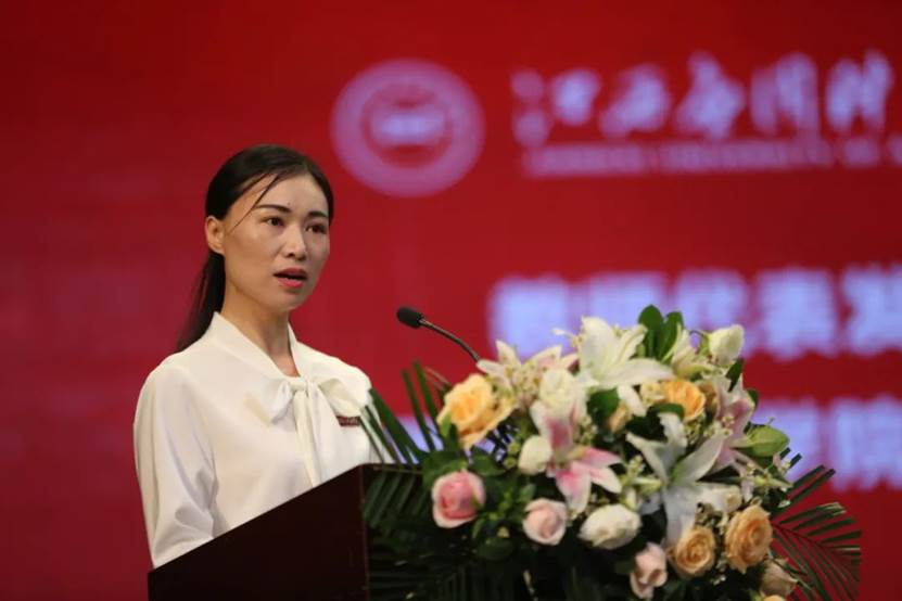 教师代表现代管理学院付芳在典礼上发言。她告诫毕业生们要感恩母校,不忘母校;要拥有理想,热爱事业,带着初心,成为应科校园精神的传播者。