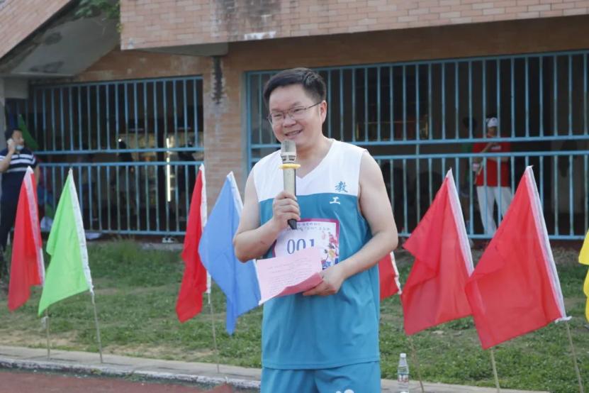国际商务学院党总支副书记徐青介绍本次活动内容,财经学院卢文林同学发言,所有领导传递接力棒,党委委员、副校长刘春斌宣布活动开始并领跑。