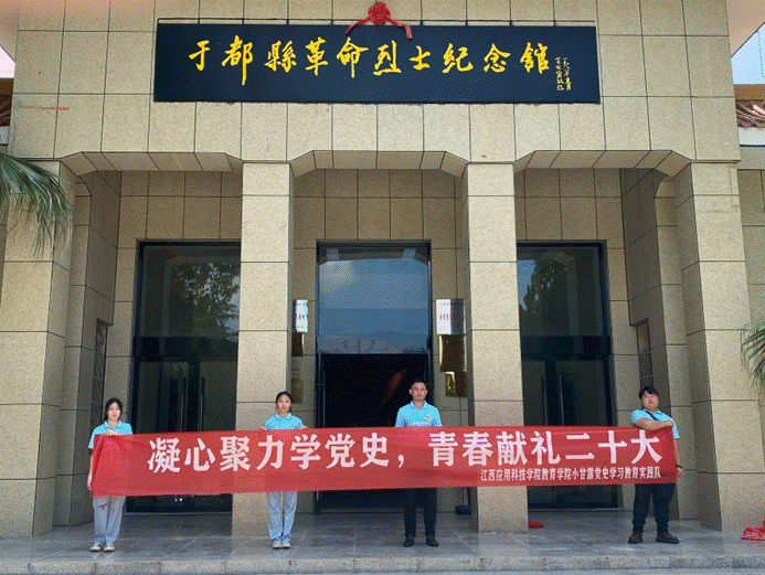 为深入学习宣传贯彻习近平新时代中国特色社会主义思想,贯彻落实习近平总书记关于青年工作的重要思想,引导和帮助广大青年学生上好与现实相结合的“大思政课”,在社会课堂中受教育、长才干、作贡献,坚定信念听党话、跟党走,迎接党的二十大胜利召开,在观察实践中学党史、强信念、跟党走, 努力成为担当民族复兴大任的时代新人,以实际行动为实现江西高质量跨越式发展贡献蓬勃青春力量,江西应用科技学院教育学院开展“喜迎二十大,永远跟党走,奋进新征程”暑期“三下乡”社会实践活动,以“党史学习实践”为主题,组建了由全国抗击新冠肺炎疫情青年志愿服务先进个人、学院团总支书记张伟健与13名青年大学生一起的小甘露党史学习教育实践队,来到中央红军万里长征集结出发地—于都县,开展重走红色足迹、追溯红色记忆、访谈红色人物、挖掘红色故事、体悟红色文化等多种形式活动,引导青年学生学史明理、 学史增信、学史崇德、学史力行,更好地传承红色基因、担当时代责任!