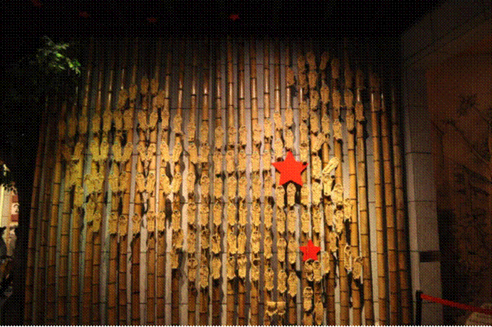 来到最后一个展厅,讲解员指着墙上陈列的带着刀痕的浮桥木板,缓缓为我们介绍《长征路上第一桥》的故事:于都河(即贡江)是红军长征首先要过的第一条大河,当时河上没有一座桥,当地百姓主动送来门板、床板,甚至寿材,几乎家中所有可用的木料都用来搭设了浮桥。共有8.6万人渡过了于都河,踏上了漫漫的长征路,开启了祖国的新篇章。至今,这段浮桥无声地诉说着88年前那段血与火的历史,以至于周恩来总理来到于都时会发出这样的感慨—“于都人民真好,苏区人民真亲”。