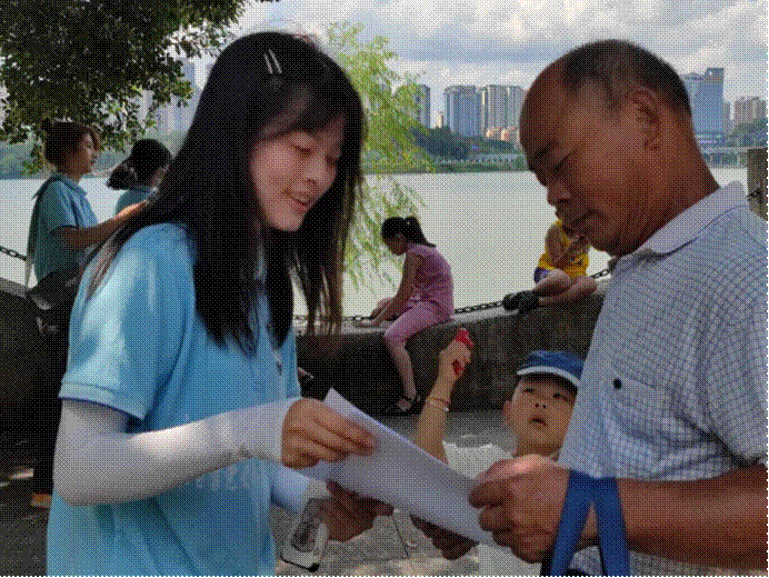 最后,在红军长征纪念园内,实践队员们展开了“于都党史故事我来讲”的党史宣讲活动。于都当地党史故事宣传册、音箱、话筒纷纷上阵,队员们用最“接地气”的方式向当地群众讲述那一段可歌可泣的历史,重温那一段英雄诗篇。当地不论男女老少全都驻足观看,听见于都的红色故事,听见红色历史岁月的回响,听见青年对红色文化的发扬和传承。