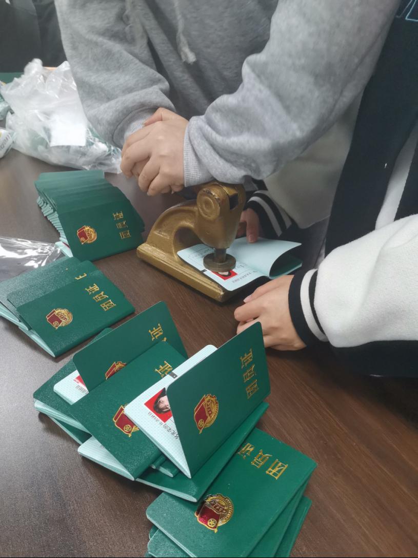 随后于11月21日下午,各学院负责人和校团委组织成员齐心合力,共同合作进行了团员证资料完善整理工作并进行团员证盖章。