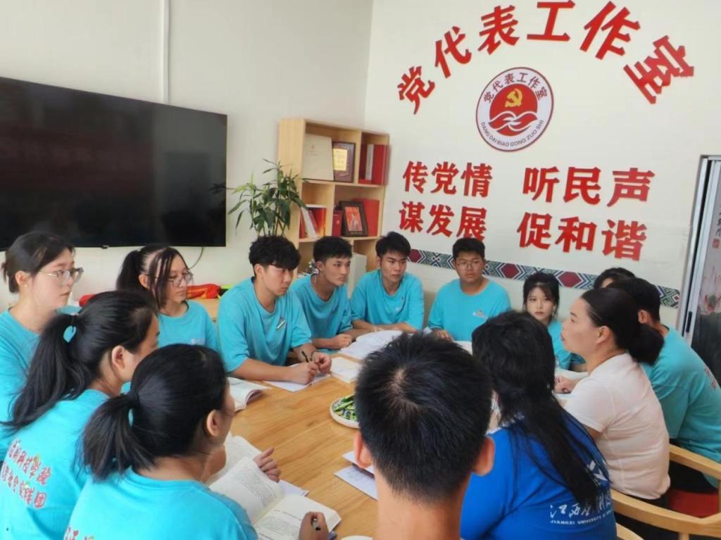 为深入开展学习贯彻习近平新时代中国特色社会主义思想主题教育活动,7月16日,党的二十大代表、古棠村党支部书记潘晓梅为江西应用科技学院“红心追梦社会实践团”队员们讲授党课。她从求学经历、就业选择、入党初心、组织发展等方面进行授课。