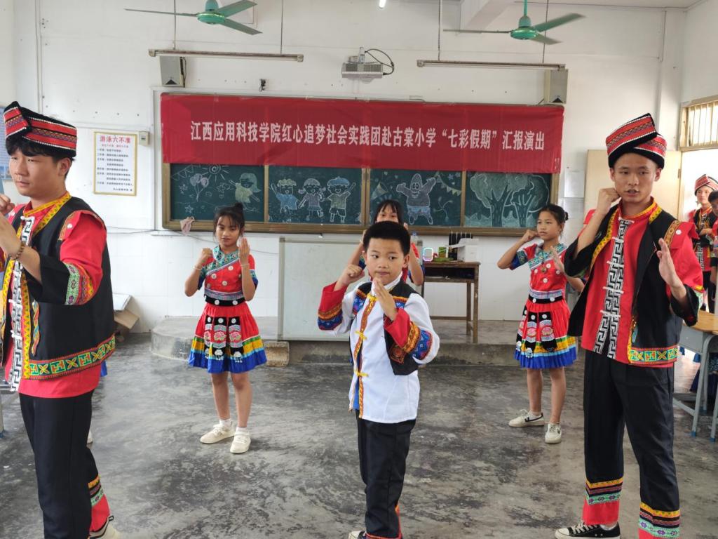 7月17日 “七彩假期,情暖童心”古棠小学汇报演出正式开始,此次汇报演出重点围绕古棠小学学生与江西应用科技学院“红心追梦社会实践团”队员们十余天支教活动的成果进行展示。