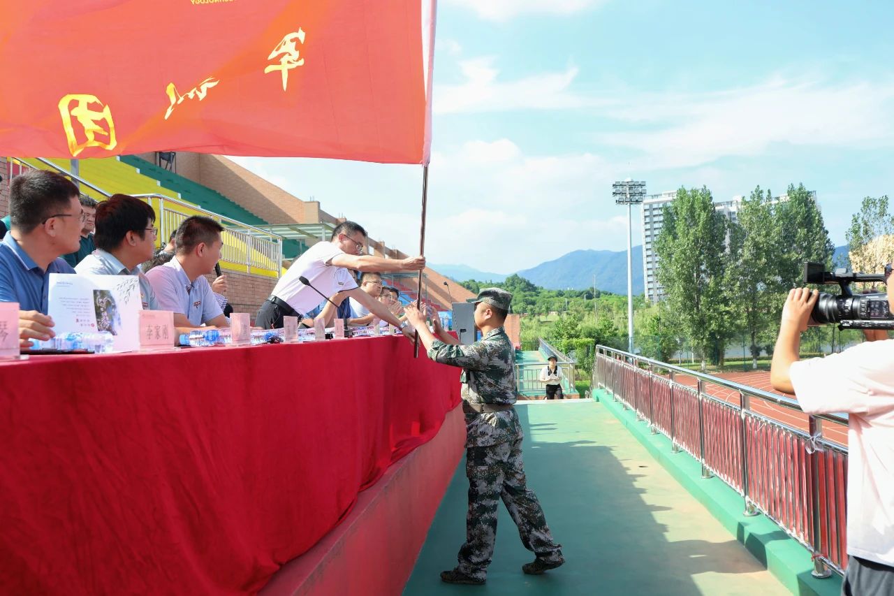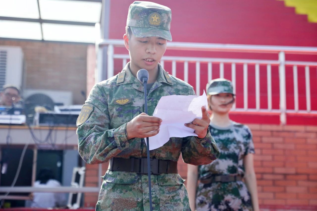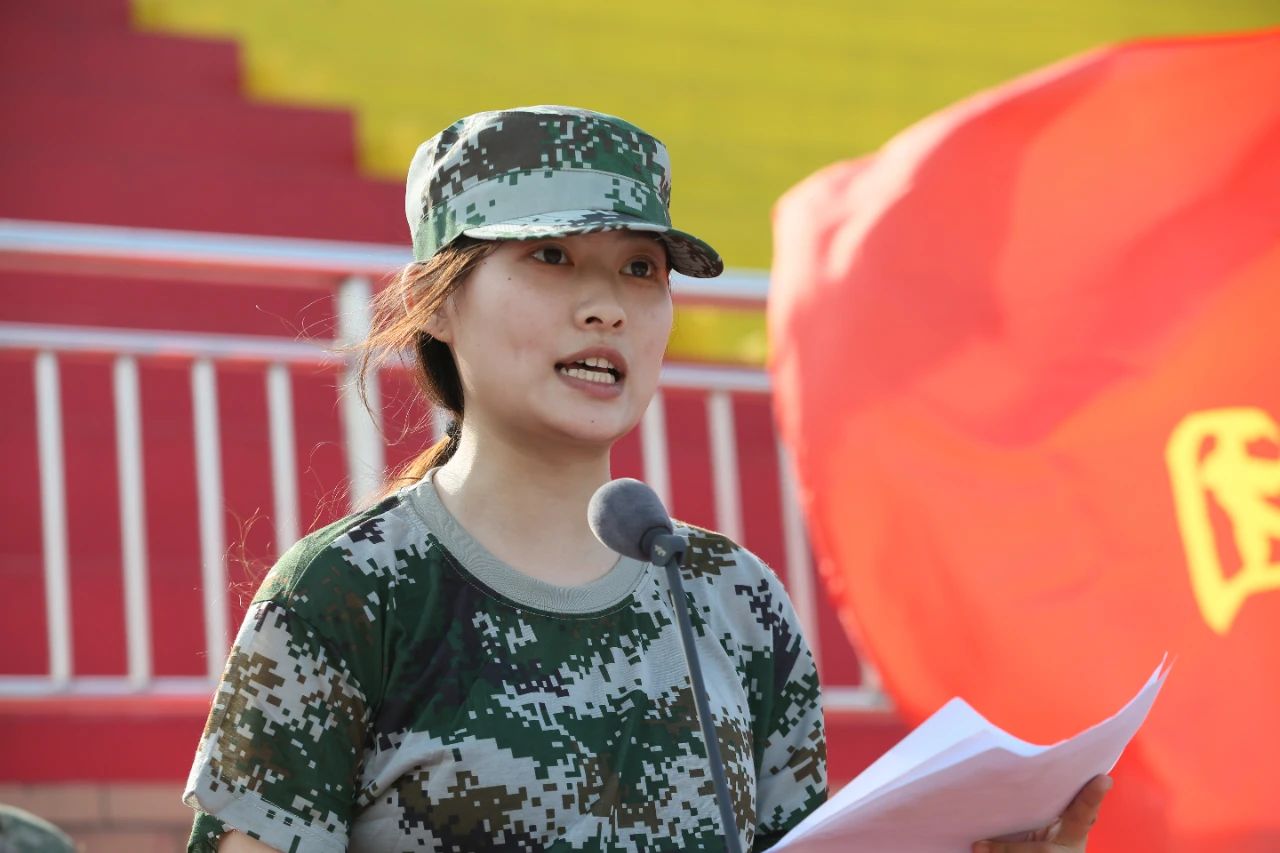 升国旗、奏唱国歌,歌声悠扬,声势浩荡。党委委员副校长张敏为军训团授旗,军训团团长吴腾飞接旗。军训教官代表陈双麒和2023级新生代表丁佳一发言。