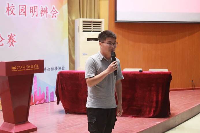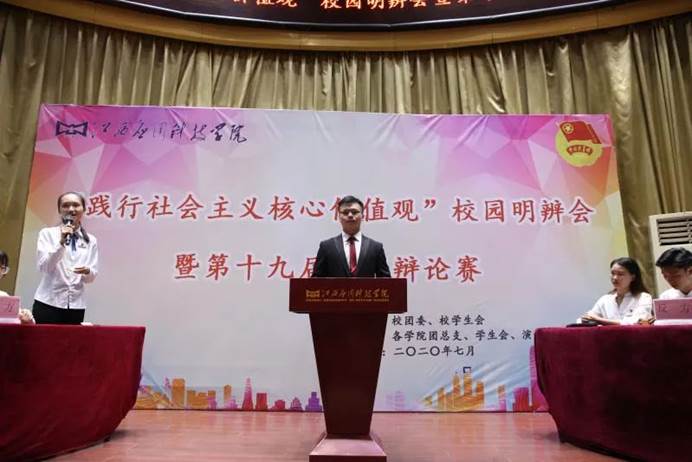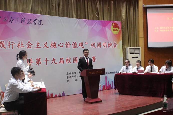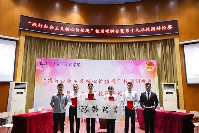 7月4日晚上7点,在我校浴星湖大讲堂举行“春暖应科”系列活动之“践行社会主义核心价值观”校园明辨会暨第十九届校园辩论赛。