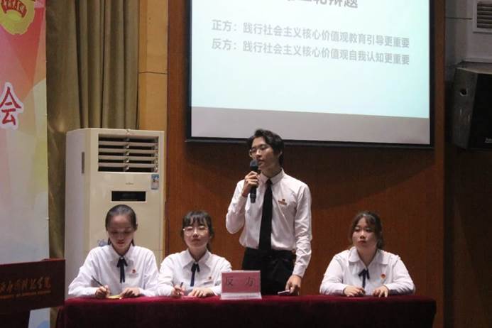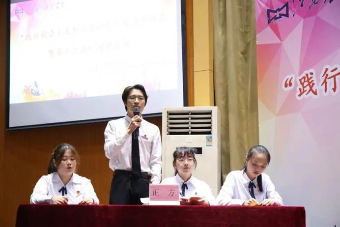 双方辩手都围绕着“践行社会主义核心价值观”进行展开,对此进行自己的理解和陈述,在不同的观点上进行辩论。