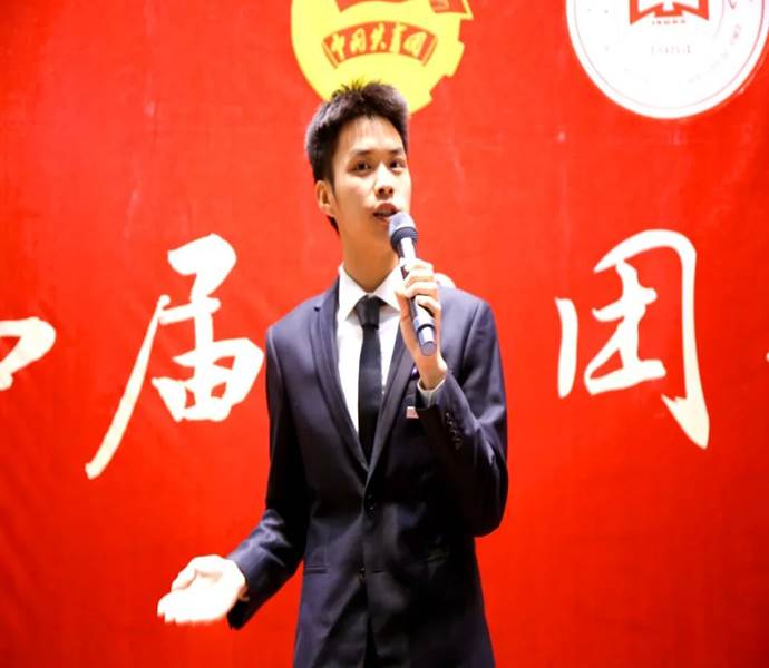 来自人工智能分院的徐洪刚同学演讲主题是“用青春铺路,让思想延伸”。他虽然第一个上场,但看上去毫不怯场。