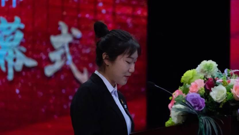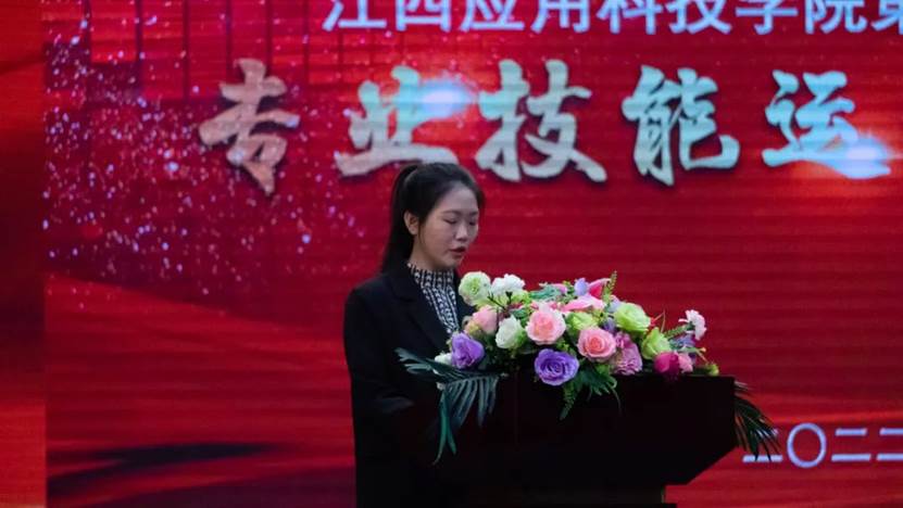 参赛学生代表国际商务学院罗思佳发言,她表示学生的目标就是通过刻苦学习,成为一名合格的对社会有用的高技能人才,证明自身的技能水平和价值。而专业技能运动会则是一个展示平台、交流平台。她号召同学们要积极投身于新时代中国特色社会主义的伟大实践中,抓住各种机会,充分发挥主观能动性,不断提高个人能力,综合素养和各项专业技能,发挥在社会发展中的主体地位。