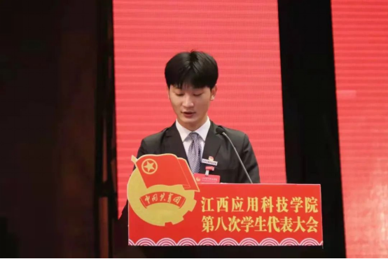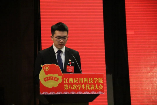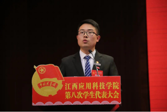 冯超翔同学代表江西应用科技学院第七届学生委员会,向大会作出了以《真学真信中牢记初心使命,细照笃行中勇于担当作为,团结引领我校广大青年学子做新时代的青春奋斗者,走好新时代的赶考路!》为主题的学生委员会工作报告。