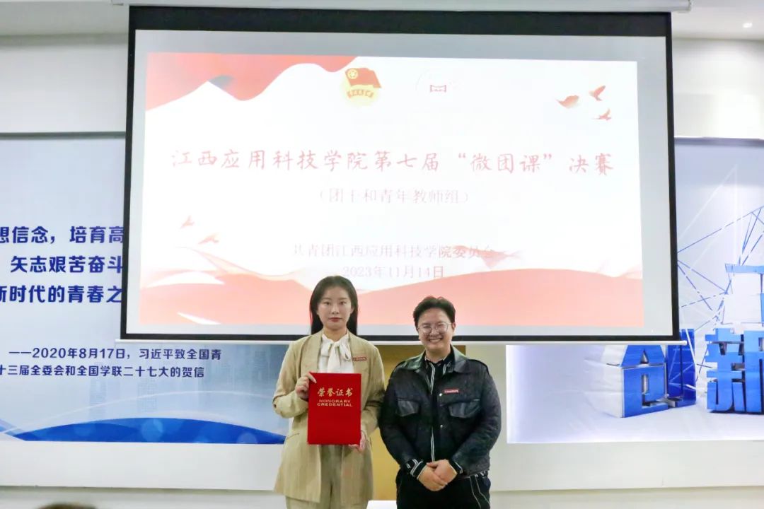 为深入学习贯彻党的二十大精神,坚持以习近平新时代中国特色社会主义思想武装头脑,丰富团课教学内容,创新团课教学形式,充分发挥团组织的凝聚力、向心力,挖掘更多有亲身故事和思想高度的主讲人,以理论学习为牵引,激发团课活力,共同打造江西应用科技学院共青团品牌特色,进一步教育青年夯实学校共青团基层组织建设,“辰林杯”江西应用科技学院团干与青年教师组微团课展示交流活动11月14日在演播大厅举办。