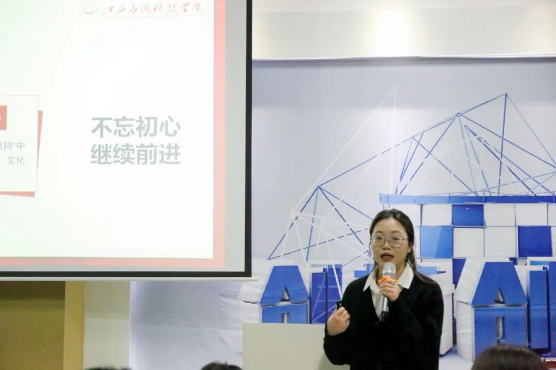 04文化自信。选手现代管理学院王青青以“文化自信”为题,引领同学们追寻文化自信之“流”,向历史深处回望,感受中华文化的源远流长,博大精深。同时,讲述夯实文化之“基”,激扬中华文明新活力,要求青年们坚定文化自信,砥砺强国之志,以尽时代之责。