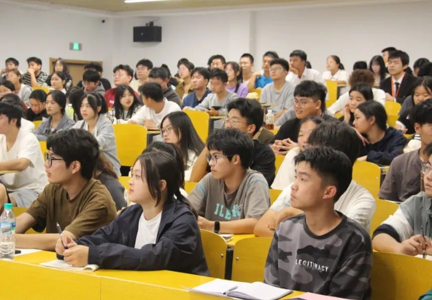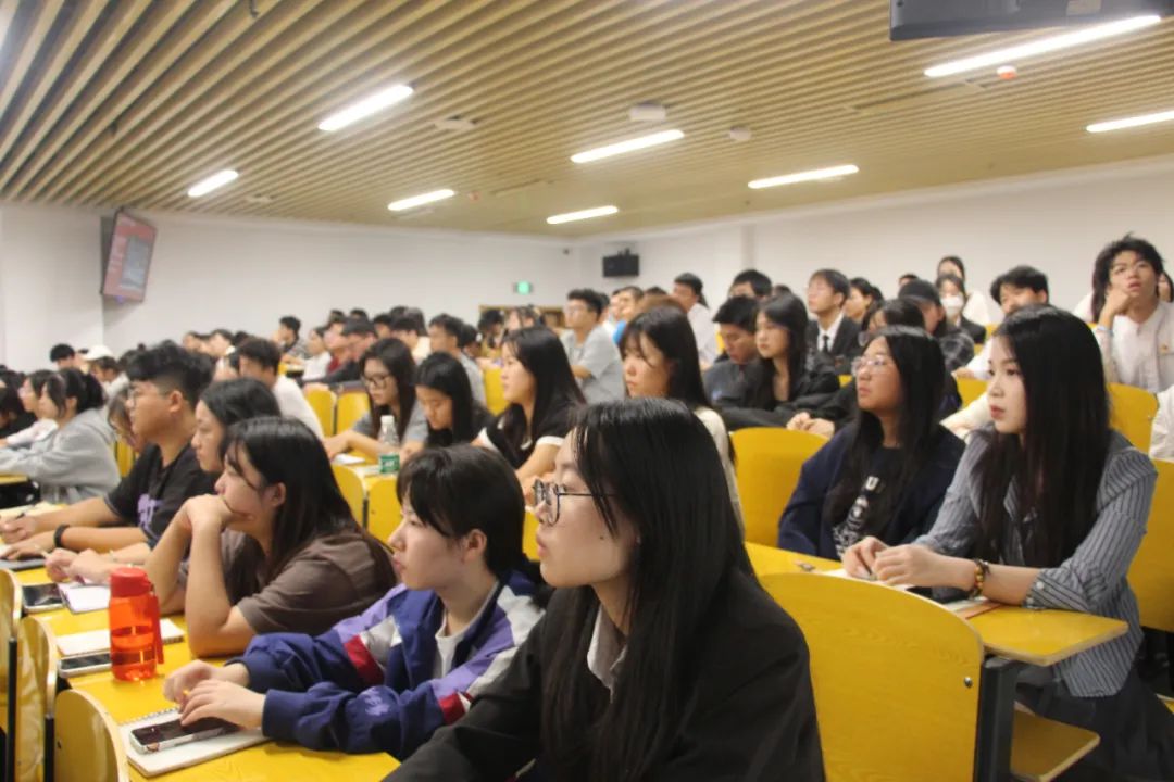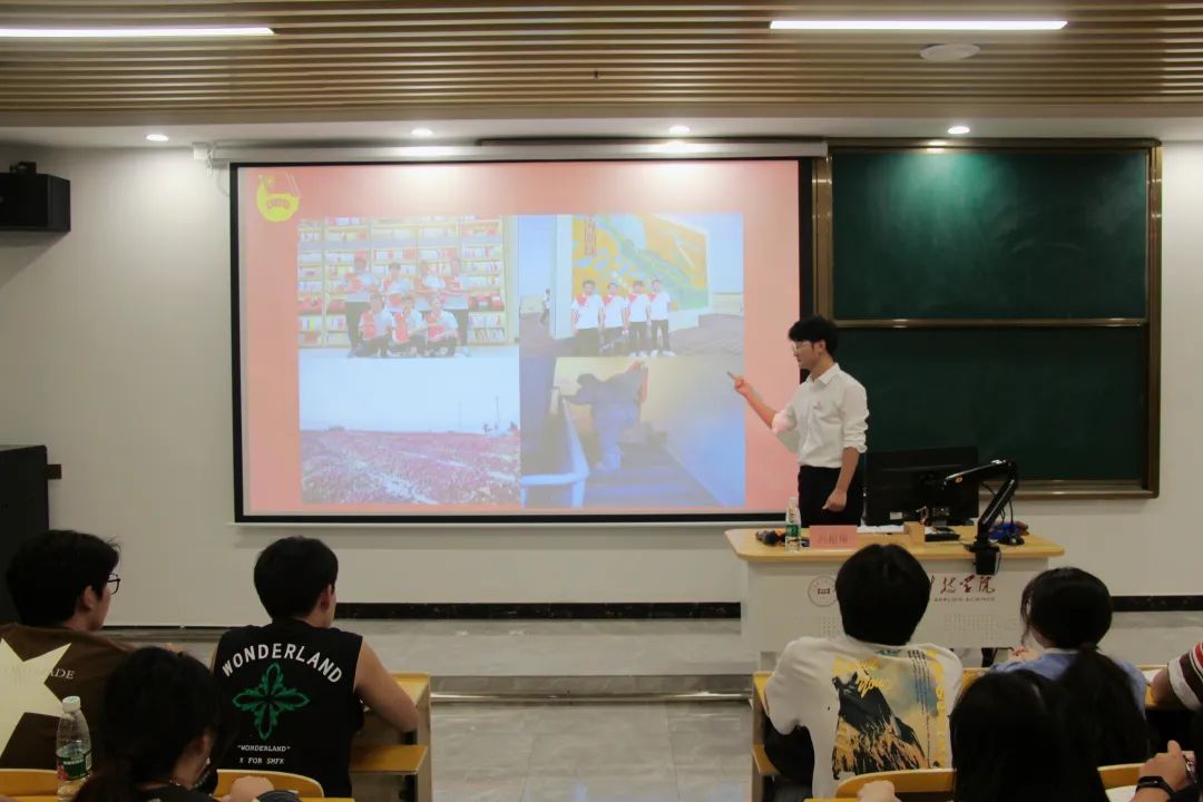 在团课现场,同学们认真听讲,积极互动。冯超翔老师通过实例说明、视频切入与同西部志愿者们视频连线的方式,以风趣幽默的语言,让同学们在轻松愉悦的氛围中感受榜样的力量。