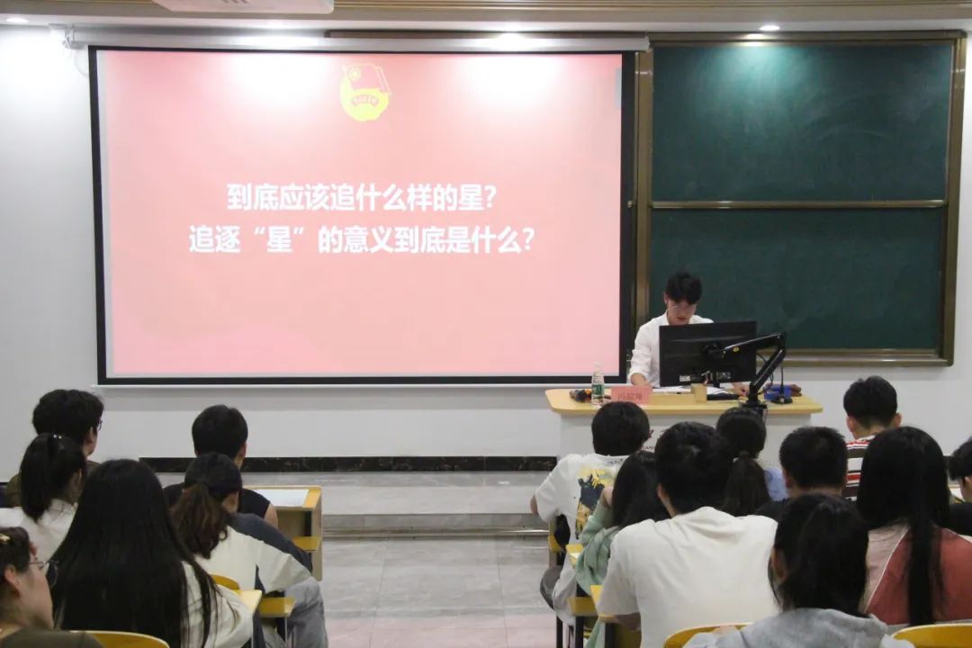 冯超翔老师从青年到底应该追什么样的星、追逐“星”的意义是什么、“新时代,新青年,新使命”这句话有什么含义三个点切入,引导入团积极分子们展开思考,带领大家了解新时代榜样所体现出的精神,教导我们新时代该追怎样的“星”。