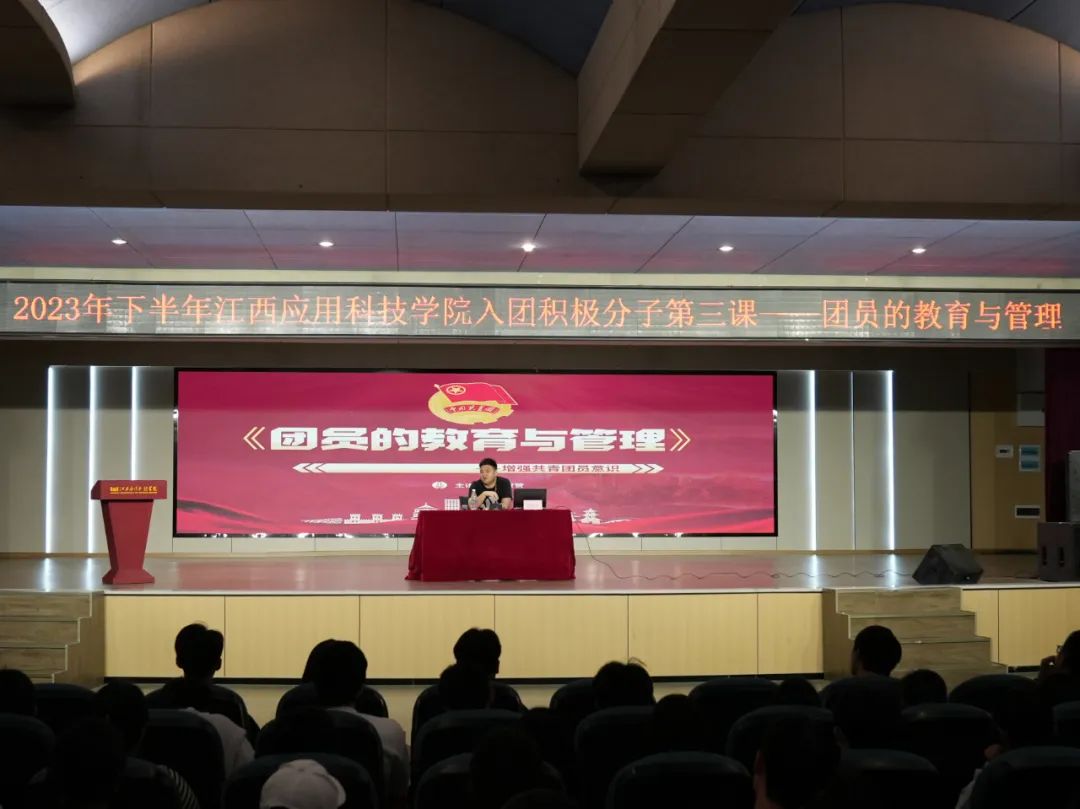 为深入贯彻落实习近平总书记关于加强新时代团员队伍先进性建设的重要指示,引导入团积极分子知团情、学团史,规范团员发展程序。2023年10月31日,江西应用科技学院团委开展了2023年下半年入团积极分子团课培训,共有125名入团积极分子参与此次培训。此次团课培训由财经学院团总支书记赵贺贺老师作为主讲人。赵贺贺老师以“团员的教育与管理——增强共青团员意识”为主题,为同学们带来了一堂精彩的讲座。