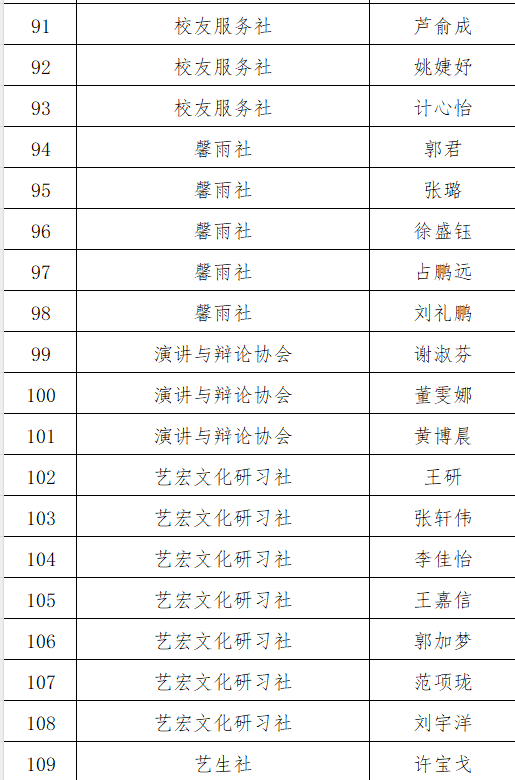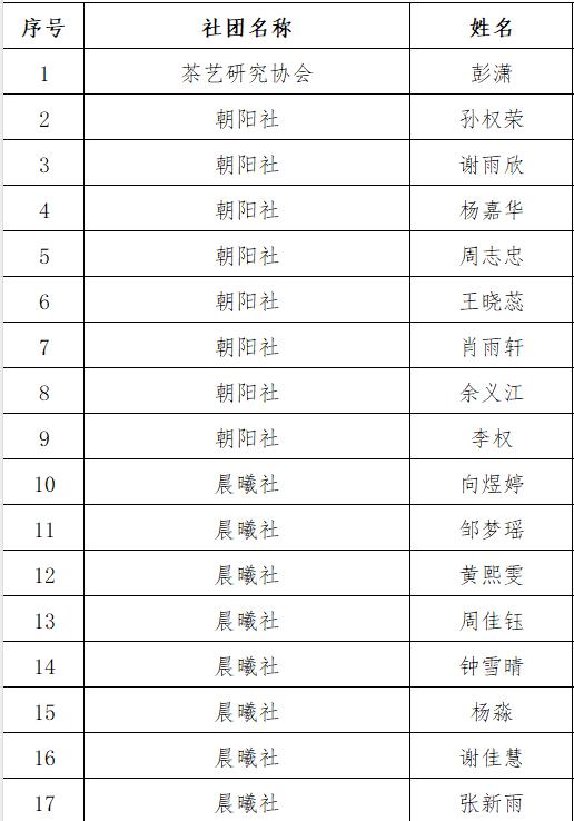 公示期从即日起至11月21日,如对本名单有异议请实名向校团委反映。