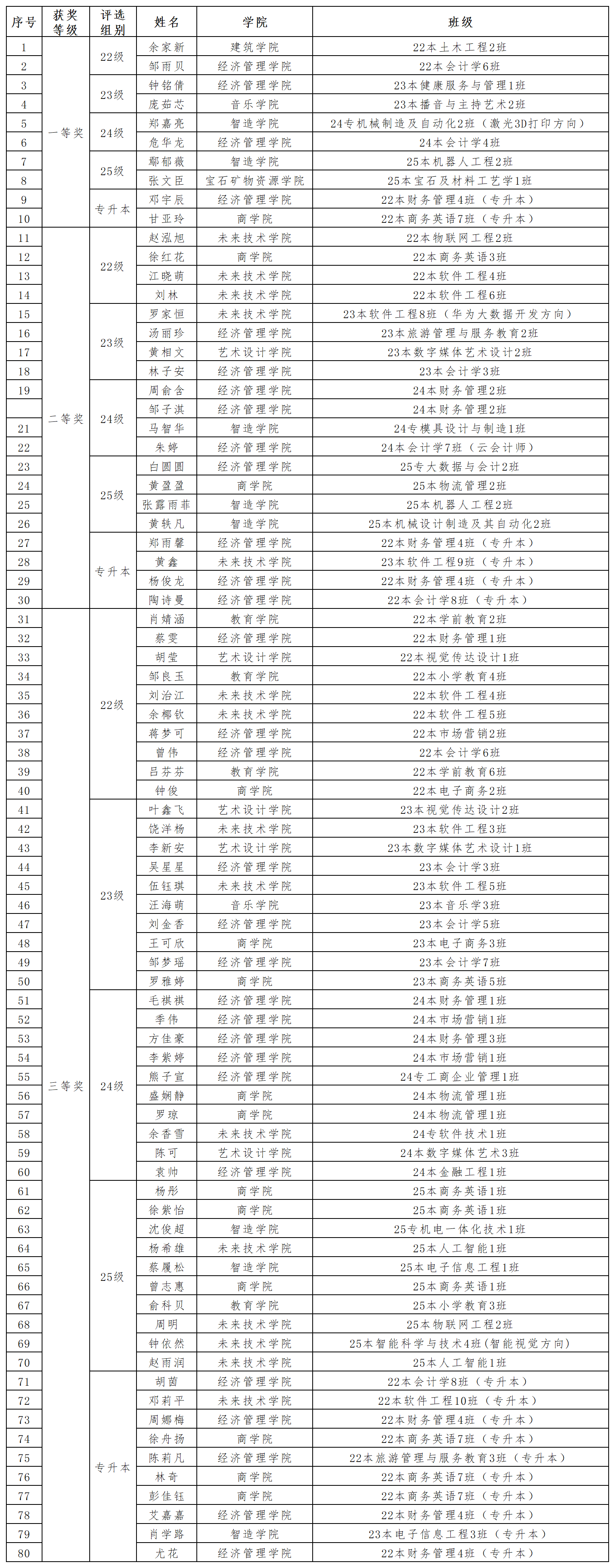 江西应用科技学院2025年度“第二课堂”奖学金获奖者名单公示