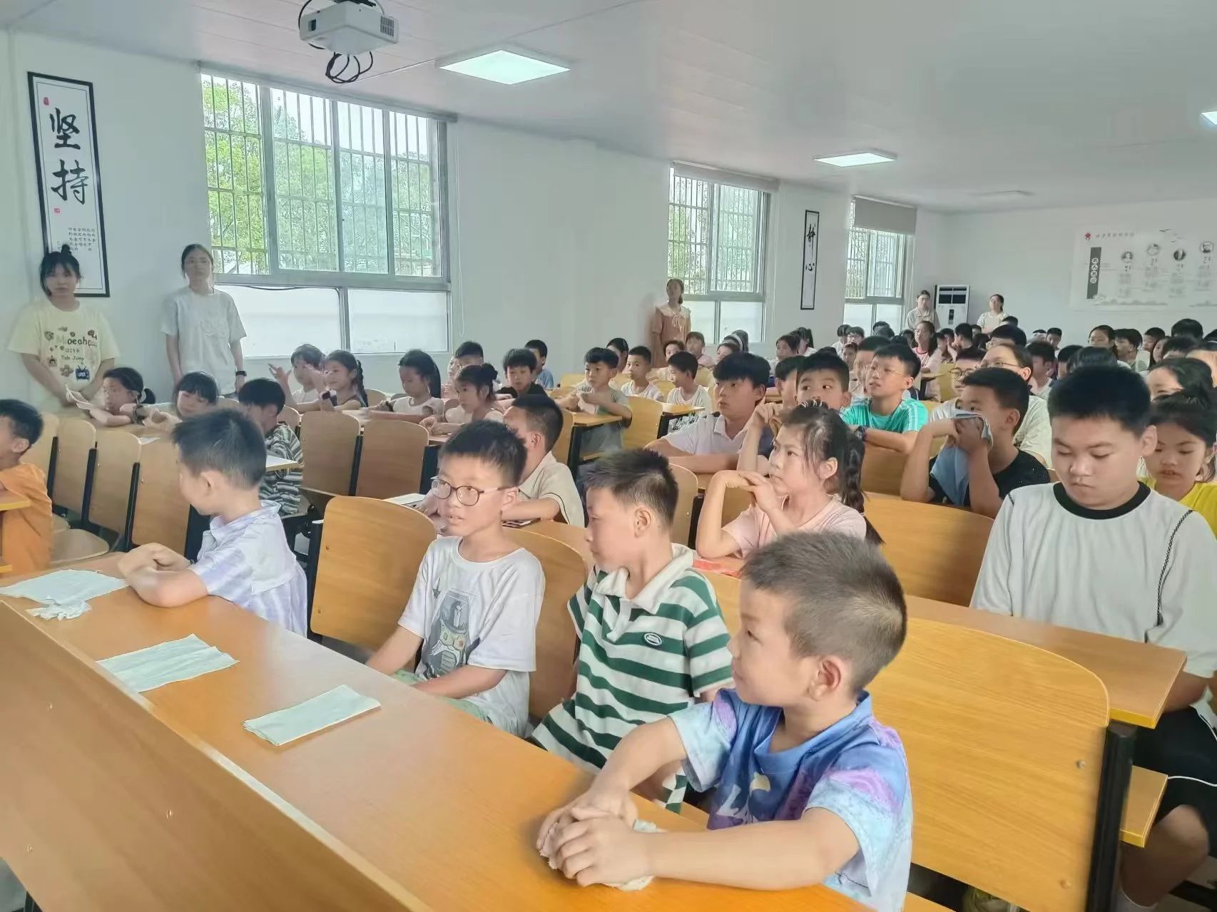 2024年的暑假,缪海超同学踏入了浙江省温州市乐清市的朝阳学校,担任暑期托管1班的班主任。初来乍到,面对一群一二三年级的陌生孩子,她因晚到四天而略显尴尬。但这份尴尬很快被孩子们的热情所融化。