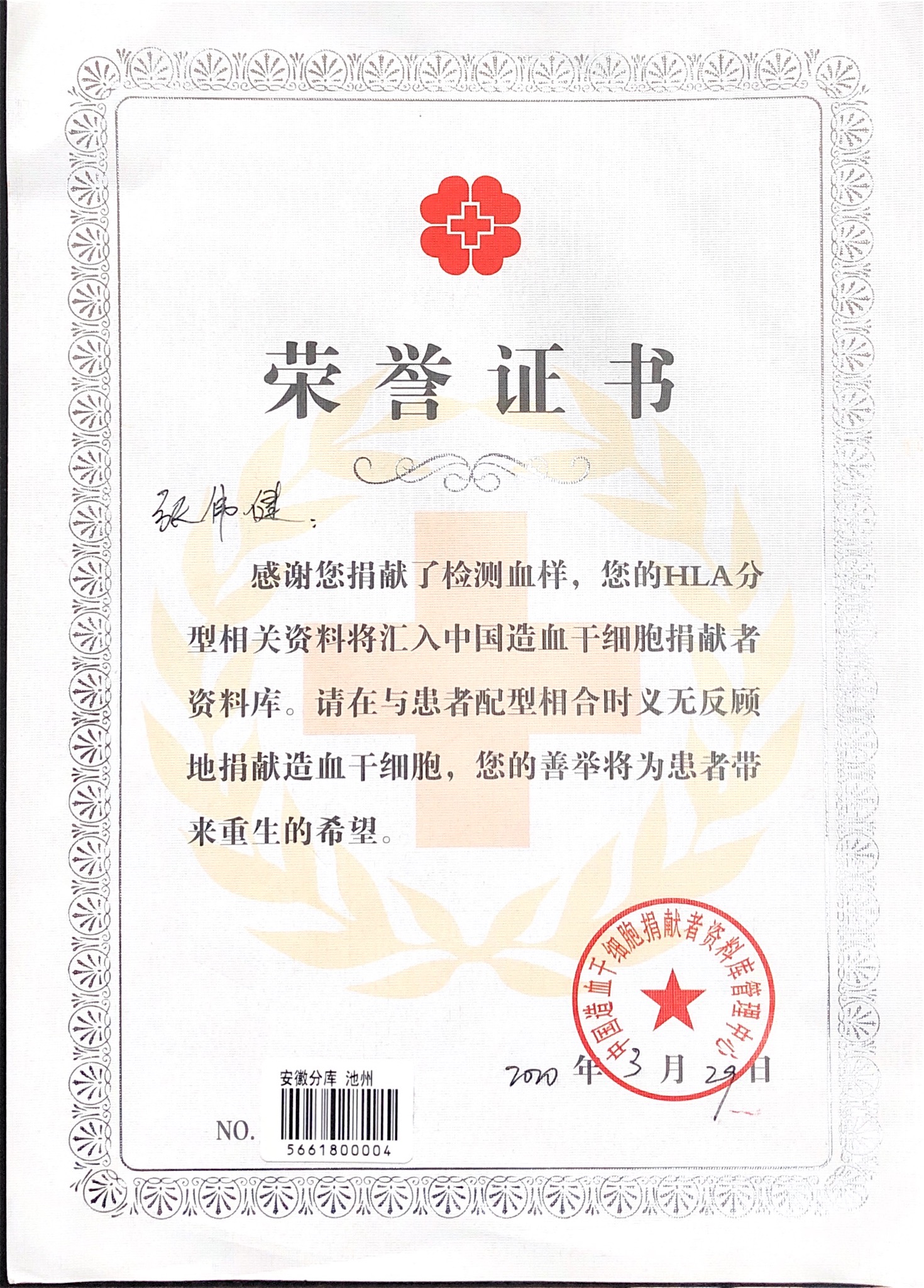 那个时候物资紧缺根本采购不到。他捻转多次终于找到了物资采购渠道。驱车一百多公里,分两批购买了口罩1000个,84消毒液50瓶等急需的防疫物资,送到葛公镇防疫指挥部供统一调度使用。当血库中心的血液告急之后,张老师驱车几十公里到东至县城进行无偿献血,本就有贫血的他,不顾身体捐献了血站急需的300cc血液,并捐献了造血干细胞入库。