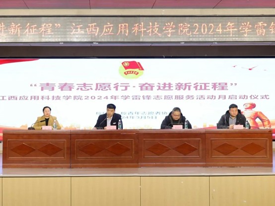 2025年3月5日,江西应用科技学院在产教融合中心演播大厅隆重举行“青春志愿行·奋进新征程”2024年学雷锋志愿服务活动月启动仪式。活动以献礼学校40周年华诞为契机,号召全体青年师生践行党的二十大精神和雷锋精神,在新征程中彰显青春担当。其中校党委副书记、纪委书记江星,校长助理、学工处处长黎晓明,校团委书记张荆及各学院师生代表500余人出席此次活动。启动仪式由校团委副书记赵贺贺主持。
