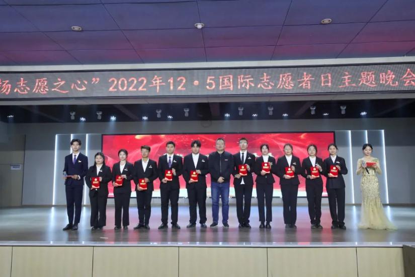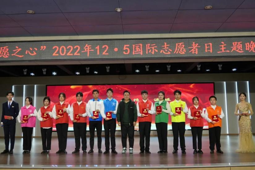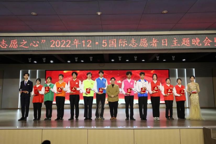 “筑青春之梦,扬志愿之心”2022年12.5国际志愿者日主题晚会暨总结表彰大会近日在演播大厅举行。副校长刘春斌,学工处处长黎晓明,团委书记张荆,学工处副处长陆玮以及各学院党总支书记、团总支书记,志愿者代表参与了本次活动。刘春斌副校长在大会上向志愿者致以节日的问候。