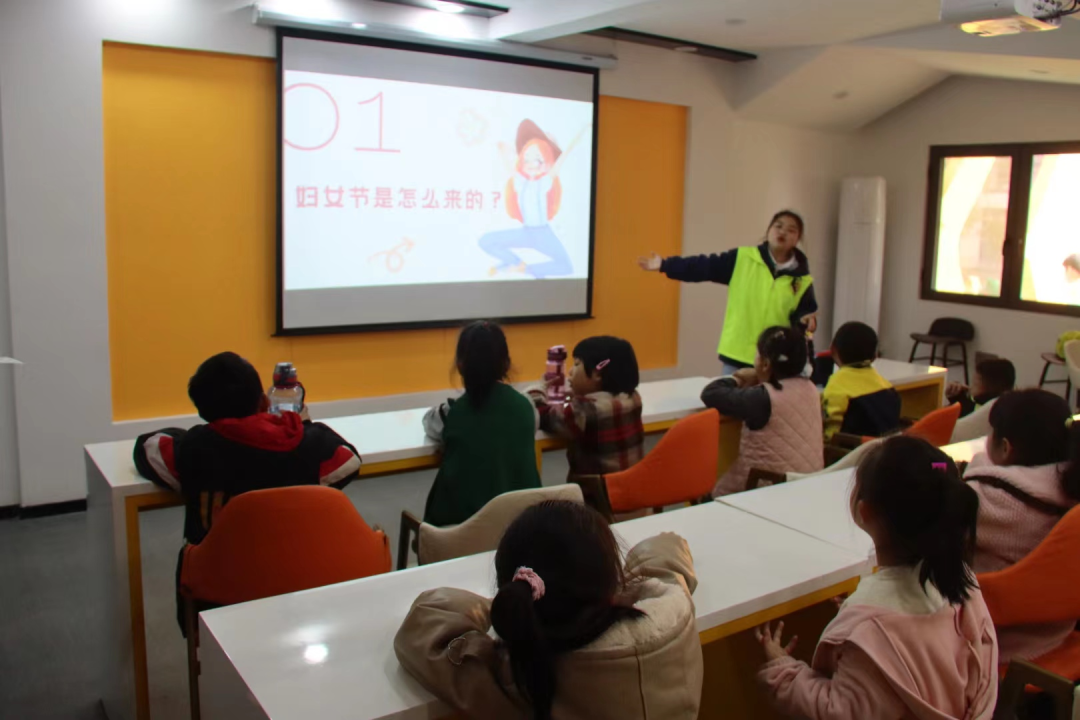 在科普课上,志愿者们为小朋友讲述了秋瑾、屠呦呦、张桂梅这三位伟大的女性人物,用她们的故事帮助小朋友们正确认识女性的力量。