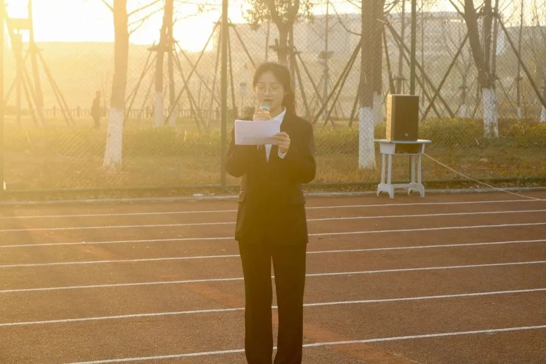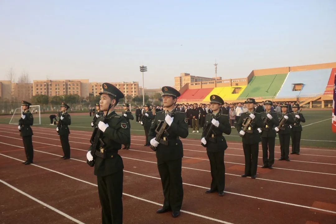 春风拂面,送来泥土的芬芳;旭日东升,照亮学子的脸庞。在雄壮的国歌声中,教官队迈着铿锵整齐的步伐,护送国旗入场。五星红旗迎着朝阳冉冉升起,爱国主义情怀随风飘扬,鲜艳的五星红旗在全体师生的注目中缓缓升起。全体师生庄严肃立,高唱国歌,仰望长空,向国旗敬礼。